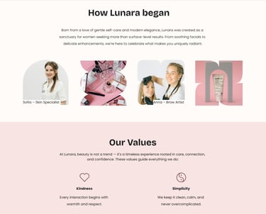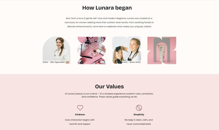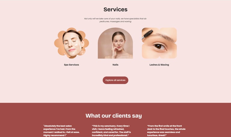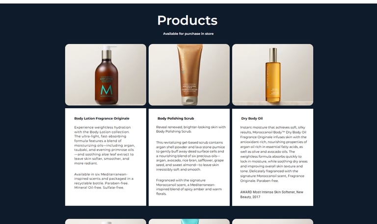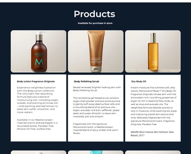 Designs from product, contact, about, and services pages